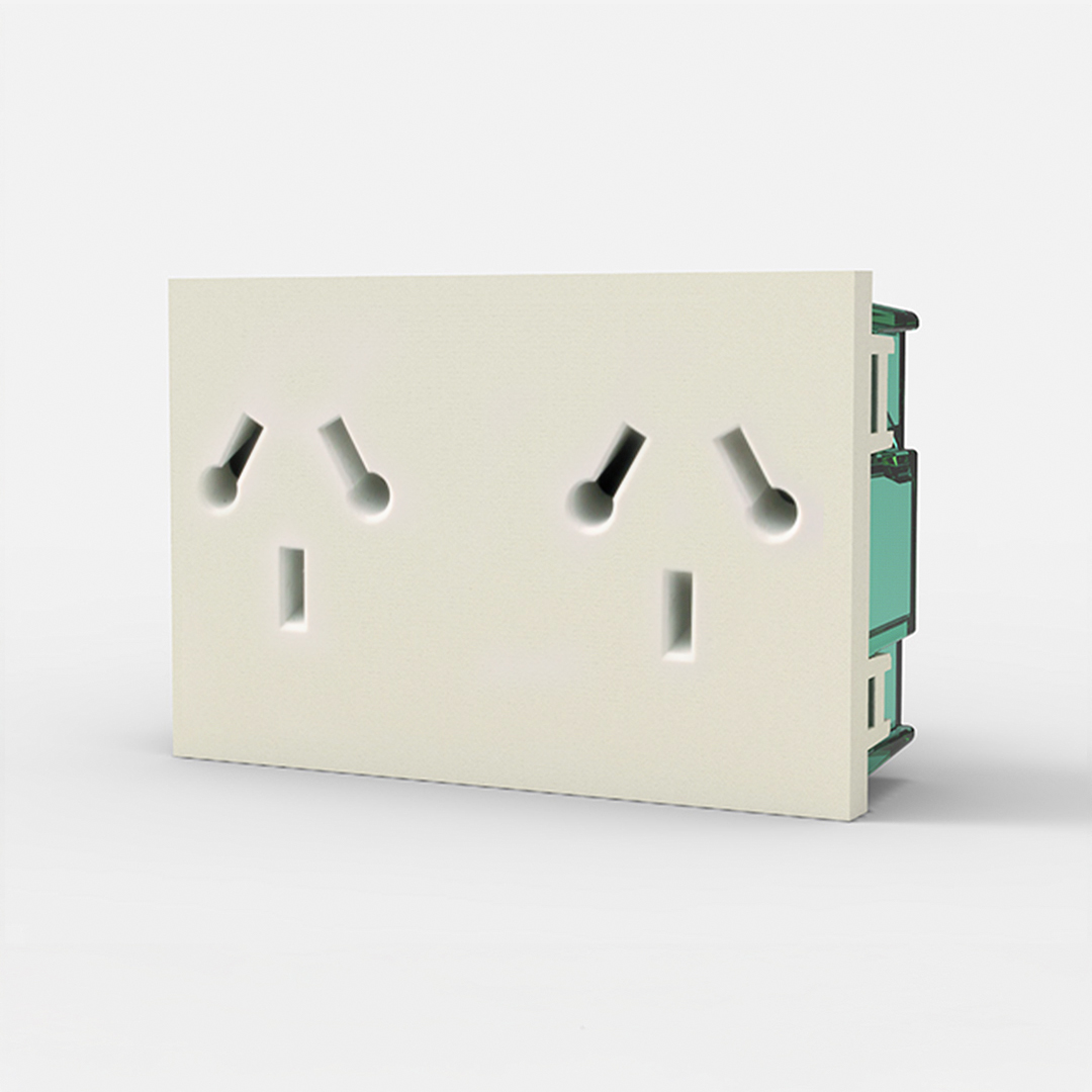 Llave de luz de diseño con formas básicas en su funcionalidad sin que esto impida que se destaque el equilibrio de lo artístico con lo moderno. Se destaca por generar una distancia entre la pared y la tapa que hace que esta se perciba como si flotara, conocido como Visual float. Los materiales puros pueden sufrir diferencias tanto de tonalidad o de textura entre lotes distintos de fabricación, por tratarse de materiales naturales.