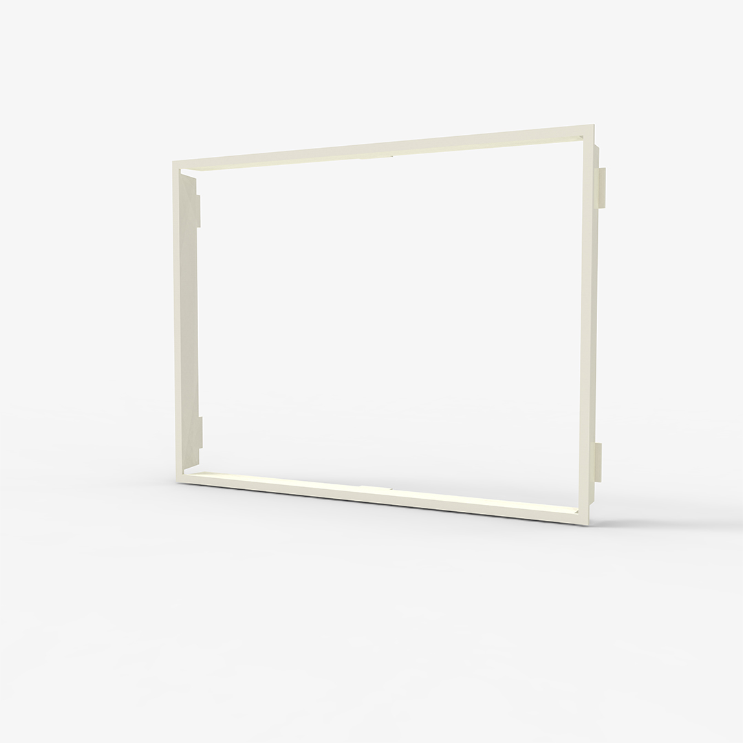 Llave de luz de diseño con formas básicas en su funcionalidad sin que esto impida que se destaque el equilibrio de lo artístico con lo moderno. Se destaca por generar una distancia entre la pared y la tapa que hace que esta se perciba como si flotara, conocido como Visual float.